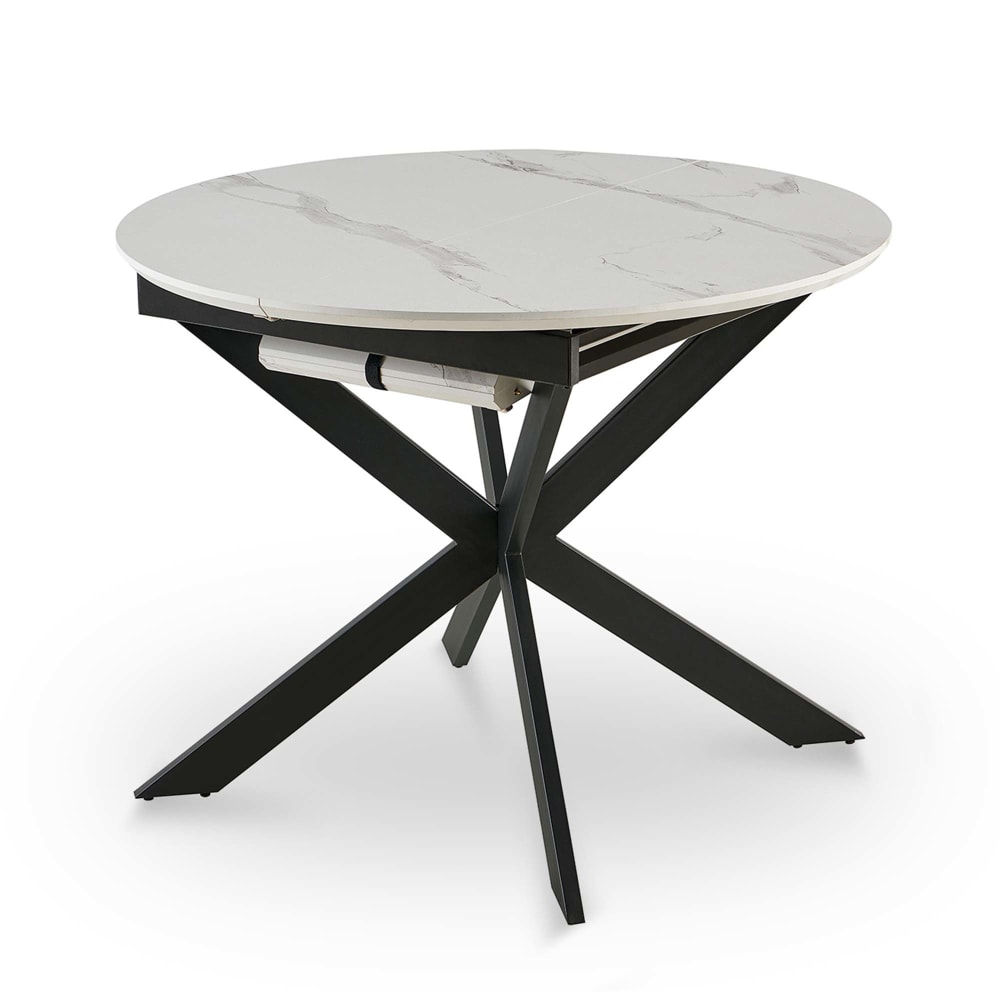 Drawer Table à manger 4 personnes ronde en céramique et métal - Blanc