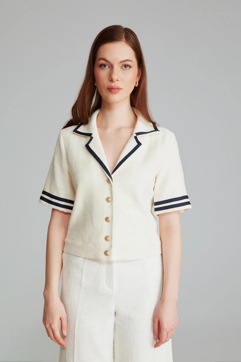Gusto Womens Textured Cotton Jacket With Buttons - Ecru - Size X-large | Gusto Sale | Discount Designer Brands