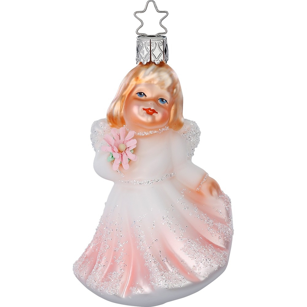 INGE-Glas Manufaktur Christbaumschmuck Engelsmädchen 10cm - Glas Figur Mundgeblasen & Handbemalt Weihnachtsbaum Anhänger Weihnachten Christbaumanhänger Engel Weiß Rosa