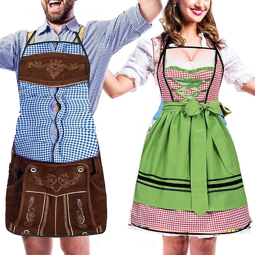 Carnevale Birra Oktoberfest 2 Pezzi Grembiule Costumi Divertenti Cameriera Coppia Oktoberfest Monaco di Baviera Wiesn Prati Coppia Per uomo Per donna Carnevale Festa della birra Panno in stile