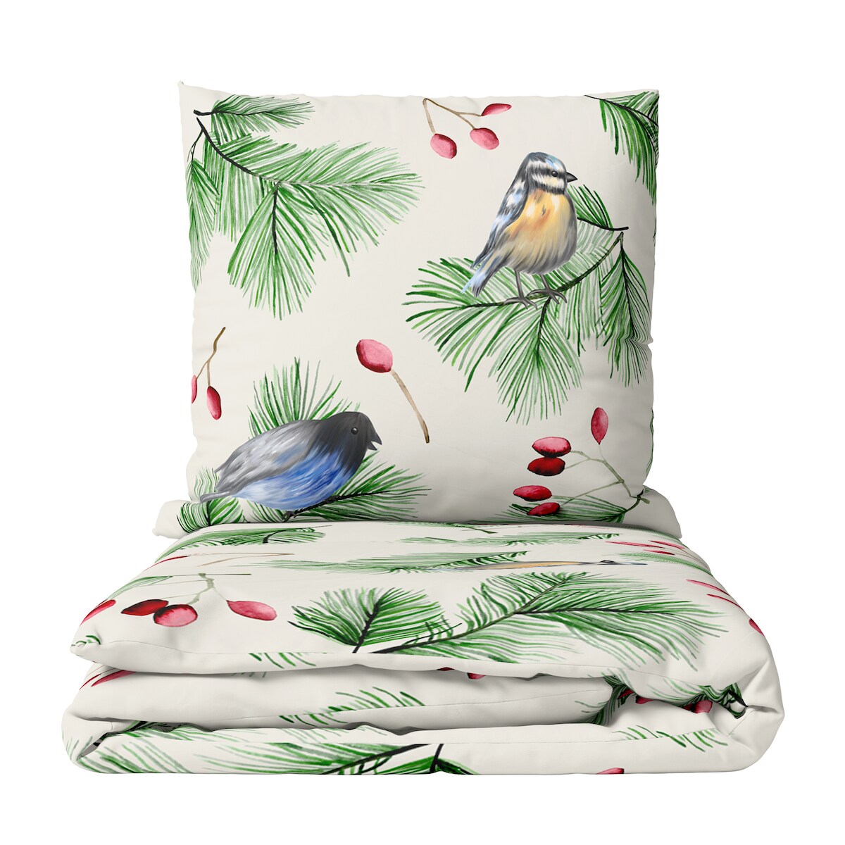 Leonado Vicenti Flauschige Fleece Bettwäsche 135x200 cm Beige Grün Vögel warm mit Reißverschluss 2 teilig