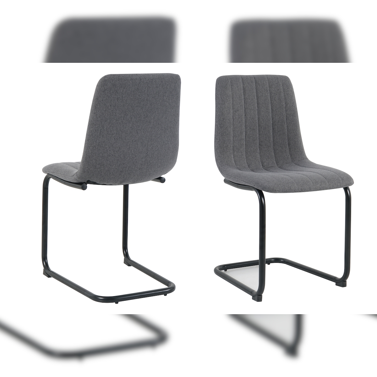 Möbilia Freischwinger-Stuhl, 2er-Set | Bezug Strukturstoff | Gestell Metall | B 43 x T 53 x H 87 cm | anthrazit – schwarz | 21020069 | Serie STUHL