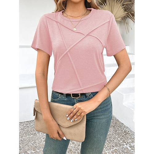 Per donna Normale Tuta Elegante Tinta unica Manica Corta Dritto Scollo a V Patchwork Tasca Vacanza Casa Vestibilità regolare Blu Bianco Giallo Estate