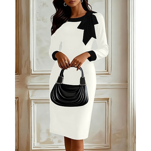 Per donna Abito al ginocchio Vestito Casual Vestito in Chiffon Abito a Tubino Abito a strati Elegante Vacanza Festa Vestibilità regolare Floreale Manica Lunga Girocollo Nero Bianco Blu Verde Estate