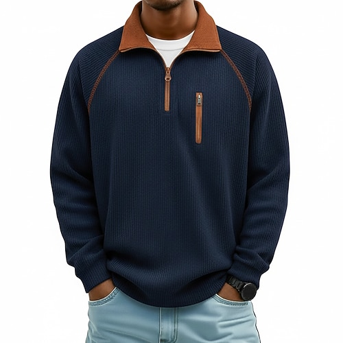 Per uomo Camicia di Velluto a Coste Polo con zip a un quarto Casuale All'aperto Zip a un quarto Manica Lunga Moda Moderno Tinta unica Lavorato a maglia Caldo Primavera Autunno Tutte le stagioni