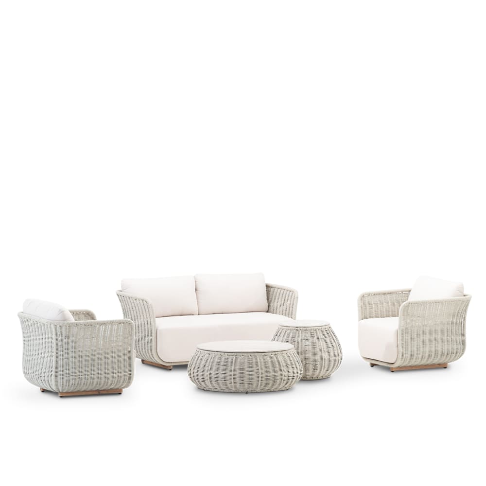 Set da giardino 4 posti corda grigia con 2 tavoli rotondi in cemento