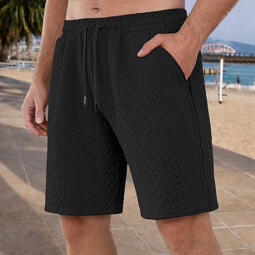 Per uomo Pantaloncini Estivi Shorts da Spiaggia Pantaloncini casual Maglia a trecce Pantaloncini strutturati Jacquard Coulisse Elastico in vita Tinta unica Comodità Lunghezza al ginocchio Quotidiano