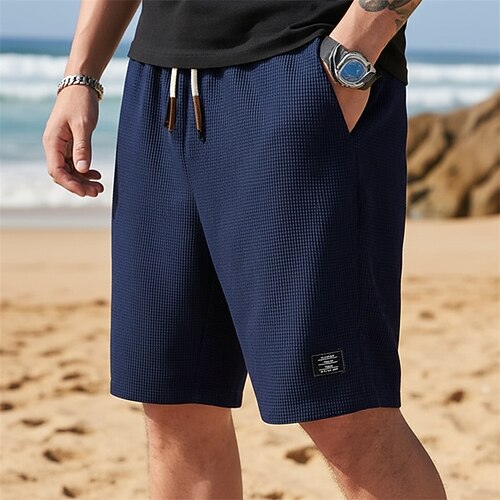 Per uomo Pantaloncini Waffle Pantaloncini Estivi Shorts da Spiaggia Pantaloncini casual Pantaloncini strutturati Coulisse Elastico in vita Tinta unica Comodità Lunghezza al ginocchio Quotidiano