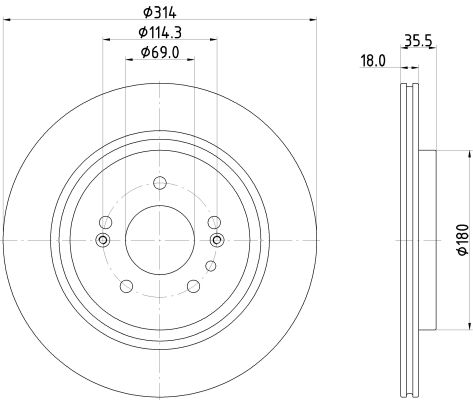 HELLA Bremsscheibe 8DD 355 135-221 hinten rechts links innenbelüftet 314mm für HYUNDAI 58411S1500 58411S1700