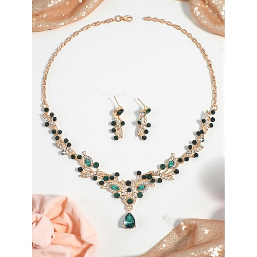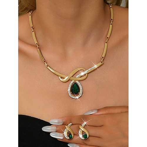 set di gioielli da donna in oro composto da 2 pezzi - collana con cristallo a goccia rossa orecchini, eleganti accessori da sposa con strass per matrimoni eventi di festa