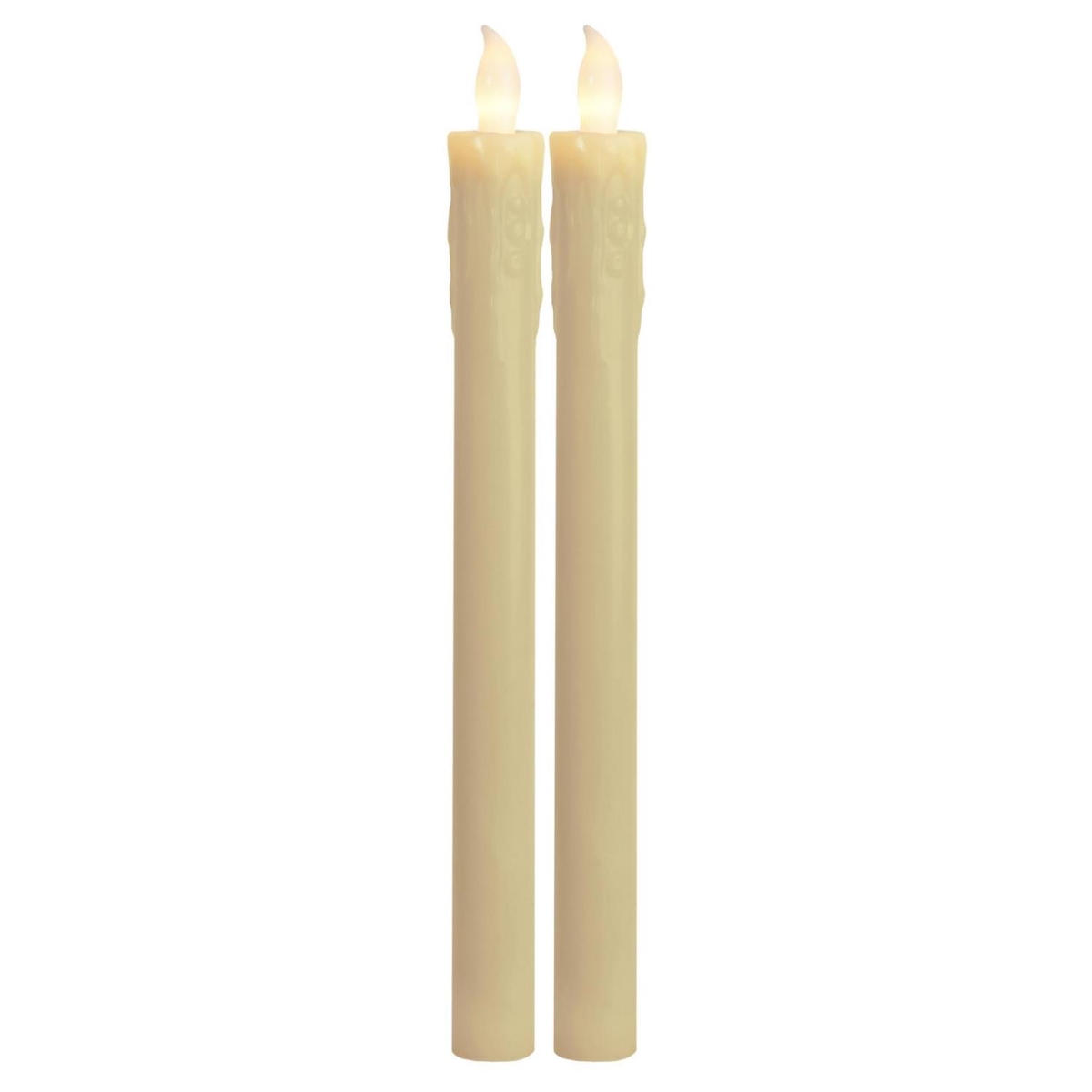 LED Stabkerzen Echtwachs flackernde Tafelkerzen LED H: 25cm creme 2St.