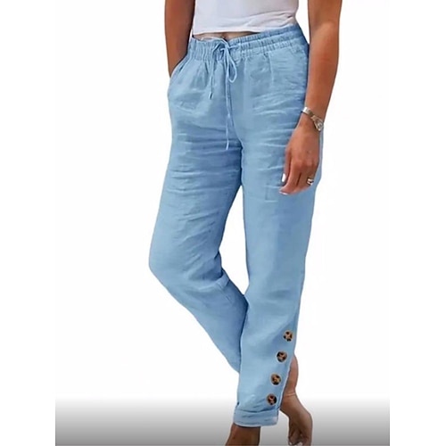 Per donna Finto cotone e lino Culotte Gamba Larga Chinos Vintage Moda Streetwear Lunghezza alla caviglia Vita media Semplice Tasca Fascia Elastica Comodo Morbido Confortevole Micro-elastico