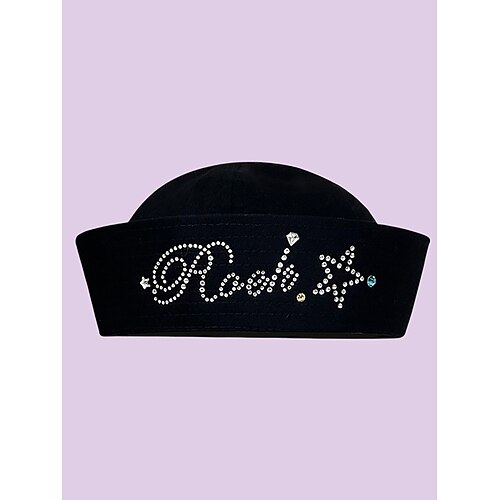 Cappello da marinaio da donna con scritta in strass, elegante berretto da esibizione per abiti kpop, feste in maschera di Natale e accessori per costumi da palcoscenico