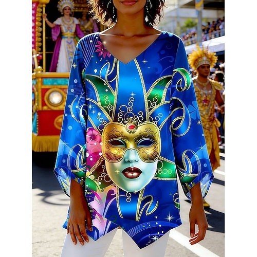 Carnevale Per donna Blusa Grafico Astratto Vintage Elegante Casual Manica 3/4 Scollo a V Top Regolari Quotidiano Ferie Stampato Blu Rosso Viola Estate Primavera Autunno