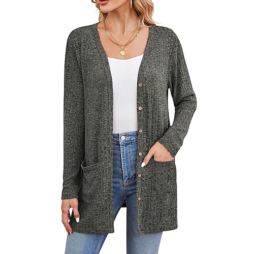 Per donna Cappotto Invernale Leggero Tasca Lavoro a maglia Elegante Vintage Moda Quotidiano Semplice Scuola All'aperto Vacanza Casa Bottone frontale Corto Scollo a V Vestibilità regolare Manica Lunga