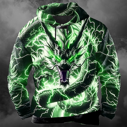 Per uomo Drago 3D Felpa con Cappuccio Felpa Cool Festa Manica Lunga Girocollo Club Abbigliamento casual alla moda Blu Viola Verde Coulisse Autunno Inverno progettista S M L XL XXL XXXL