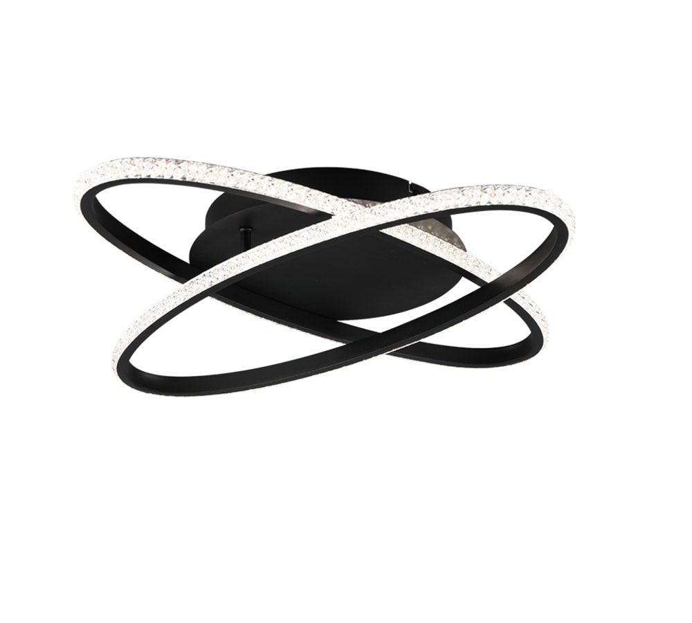 Plafoniera LED, metallo, nero opaco e trasparente, 58x58x9 cm