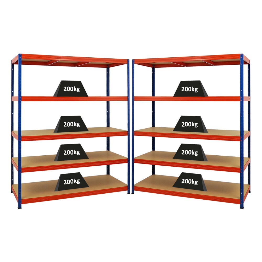 PROREGAL Mega Deal | 2x Schwerlastregal Giant Elephant | HxBxT 180x150x60cm | Fachlast 200kg | Blau-Orange | Kellerregal, Steckregal, Garagenregal