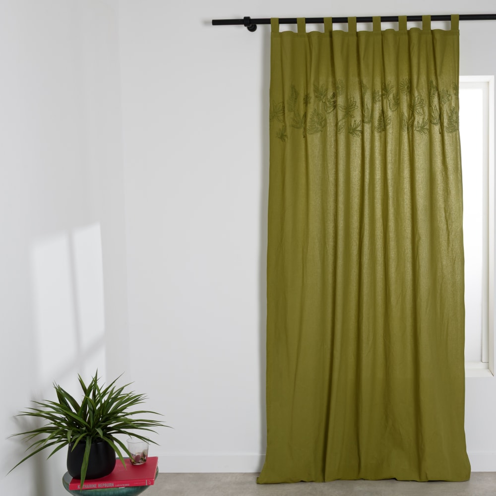 Rideau à pattes en coton motif floral en corde appliquée verte à l'unité 140x250