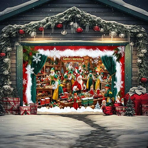 Copertura per porta da garage natalizia – striscione decorativo per esterni festivo, tenda da garage impermeabile con motivo di albero di Natale e pupazzo di neve di Babbo Natale per decorazioni