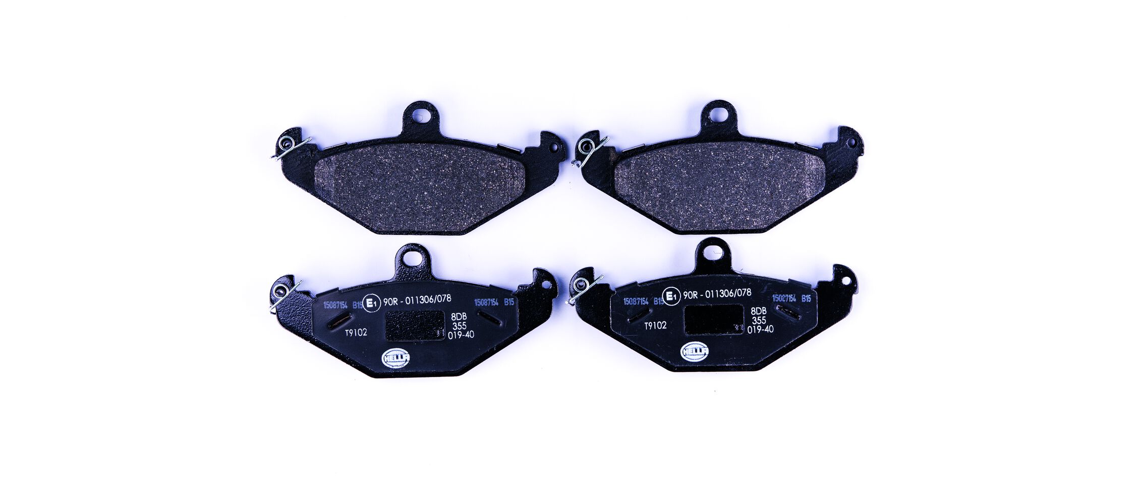 HELLA Bremsbelagsatz, Scheibenbremse hinten rechts links für GENERAL MOTORS AMC TESLA VAUXHALL LOTUS OPEL 93184618 9199059 93191371 8DB 355 019-401