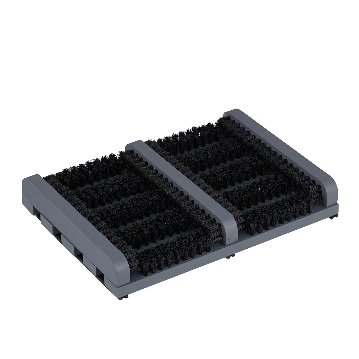 Relaxdays Schuhabstreifer mit Bürsten, rutschfester Boden, Holz, Schuhabtreter außen, Schuhschmutzbürste, grau/schwarz