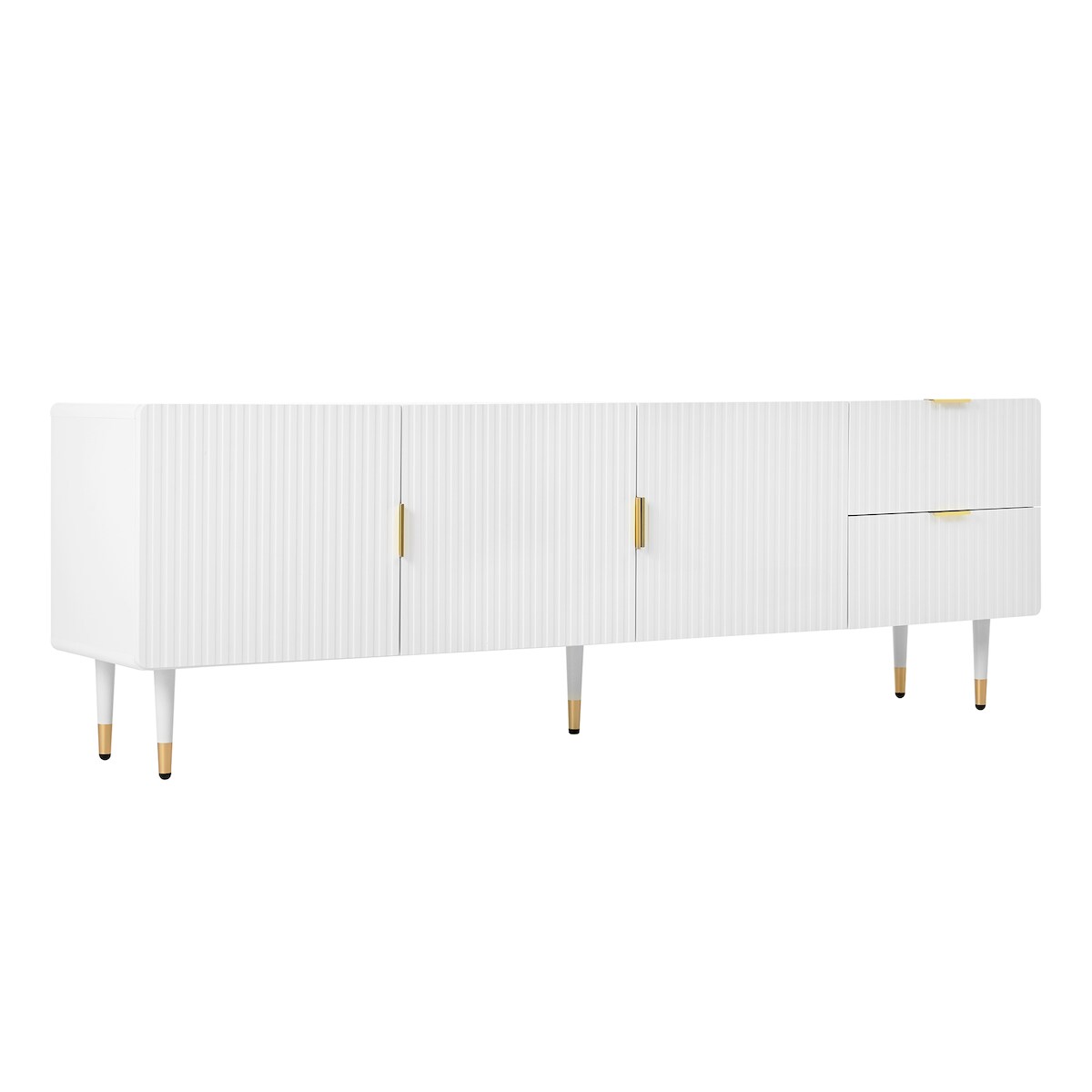 OKWISH 170x35x55 cm TV-Schrank Weiß MDF Lowboard mit Soft-Close Türen Schubladen Kabelmanagement Metallfüße modernes Wohnzimmer Möbel