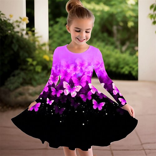 ragazze' 3D Farfalla Fiore Abito Manica Lunga Estate Primavera Vacanza Quotidiano Ferie Principessa Bello Dolce Bambini 4-12 Anni Vestito Casual Abito a trapezio Lunghezza al ginocchio Vestibilit