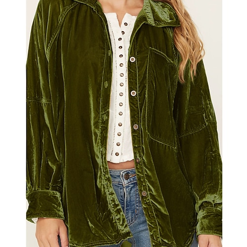 Per donna Taglie Forti Top estivi Tinta unica Casual Manica Lunga Colletto a Camicia Top Regolari Uscire Weekend Nero Giallo Verde militare Rosso Blu Estate
