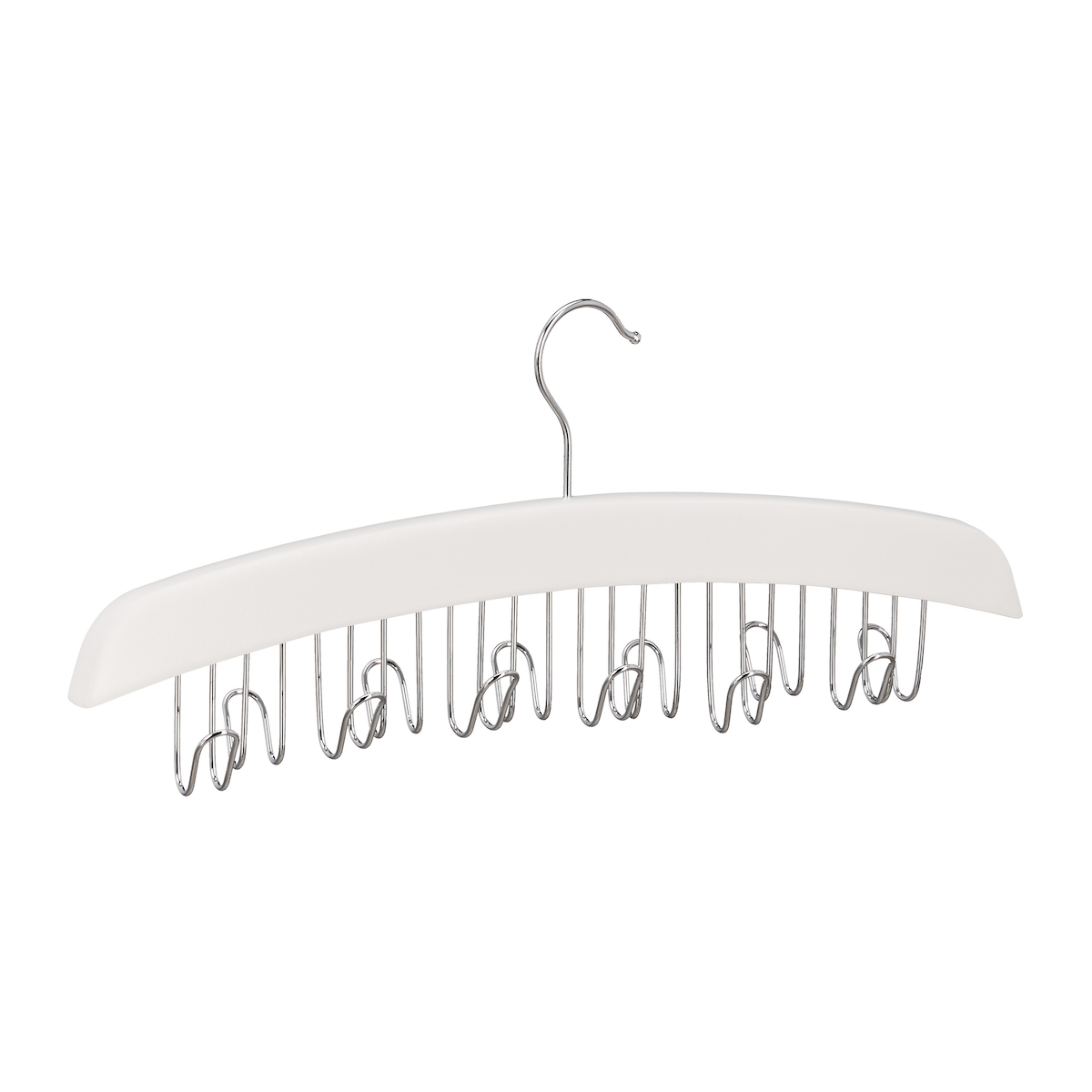 Relaxdays Gürtelhalter Kleiderschrank, Haken für 12 Gürtel, 360° drehbarer Haken, Lotusholz, 17,5x43x5,5 cm, weiß/silber
