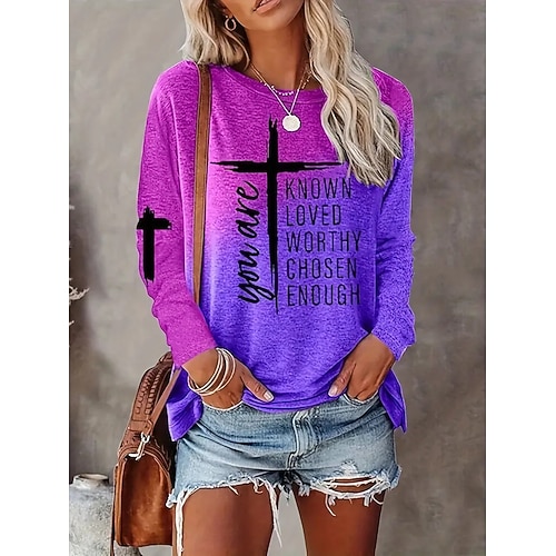 Per donna Maglietta Grafico Farfalla Lettera Vintage Elegante Classico Manica Lunga Girocollo Top Regolari Quotidiano Stampato Nero Bianco Blu Arancione Verde Estate Primavera Autunno