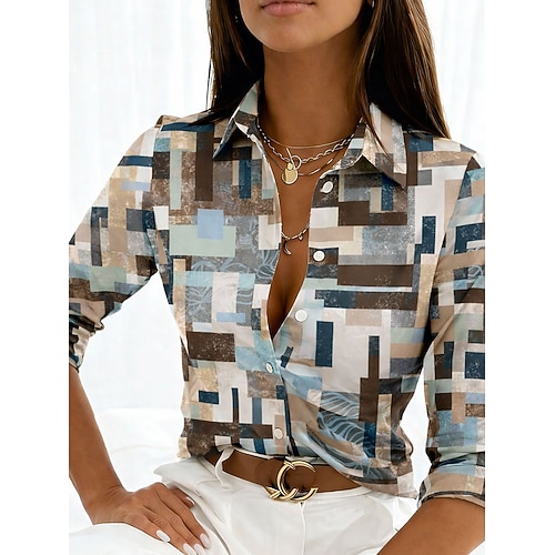 Per donna Camicia Grafico Geometrico Astratto Vintage Elegante Moderno Manica Lunga Colletto a Camicia Top Regolari Quotidiano Bottoni Stampato Blu Nero Viola Cachi Estate Primavera Inverno