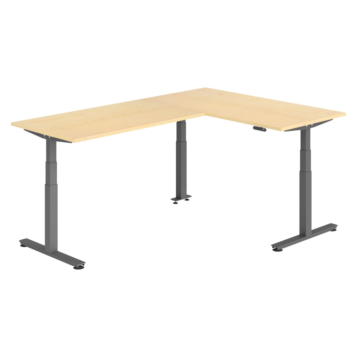 bümö Eckschreibtisch elektrisch höhenverstellbar L-Form: 180 x 160 cm in graphit, Gestell graphit - Stehschreibtisch mit Memory-Steuerung,