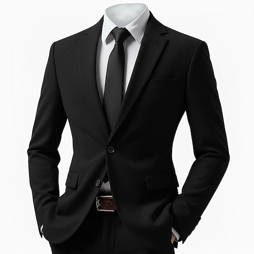 Uomo Affari Casuale Abito in velluto a coste Bavero classico Nero Borgogna Quotidiano Affari A righe Vestibilità su misura 2 pezzi Monopetto Due Bottoni