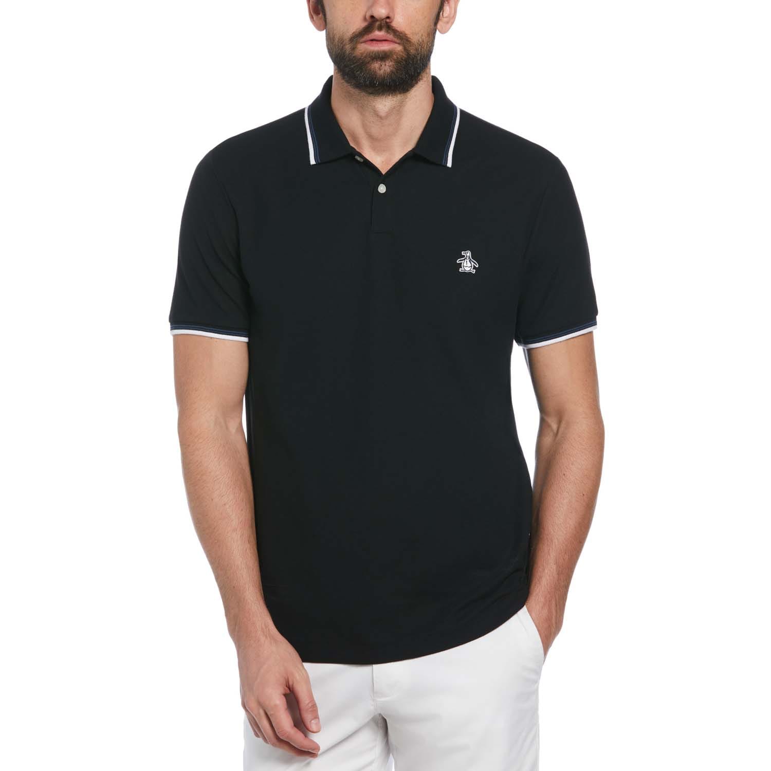 Original Penguin Mens Tipped Pique Polo Shirt in Black - Size Large | Original Penguin Sale | Discount Designer Brands