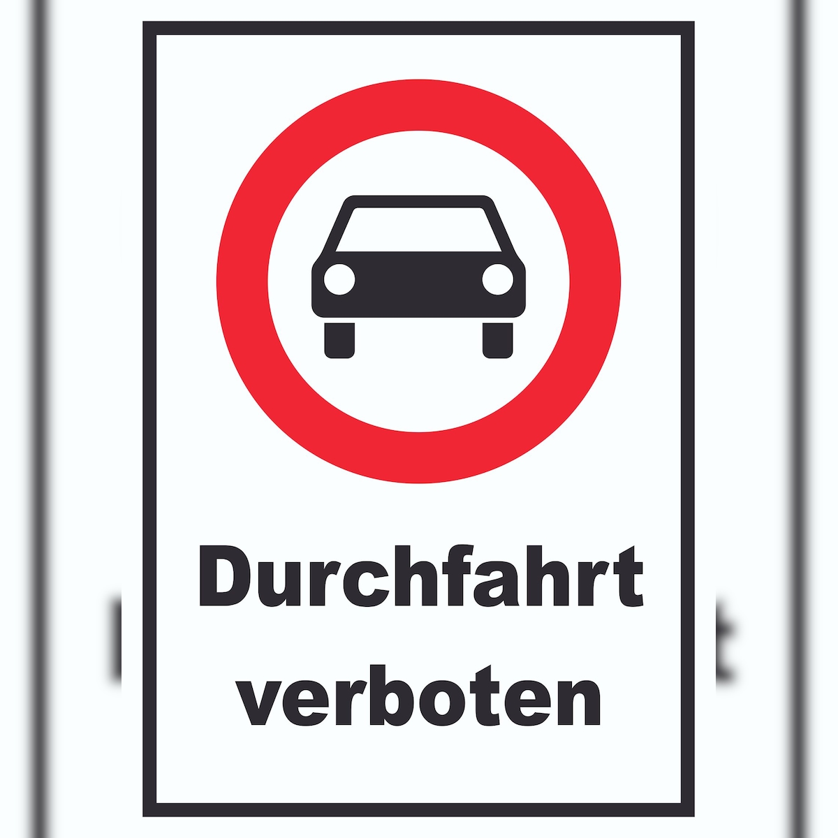 Durchfahrt verboten PKW Symbol Schild A5 Rückseite selbstklebend