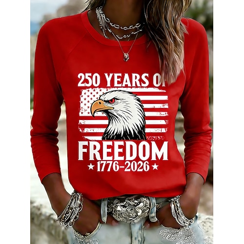 Giorno dell'Indipendenza Americana Per donna Maglietta Grafico Bandiera Lettera Vintage Elegante Classico Manica Lunga Girocollo Top Regolari Quotidiano Weekend Stampato Blu Nero Rosso Arancione