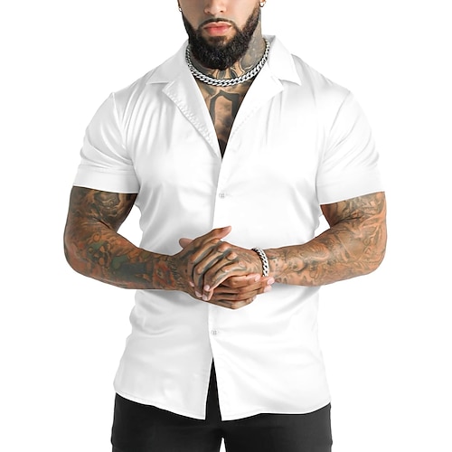 Per uomo Camicia Camicia in raso Camicia estiva Camicia con bottoni Maglietta informale Nero Bianco Blu Manica corta Tinta unica Bavero Giornaliero Da mare Abbigliamento Di tendenza Informale Comodo