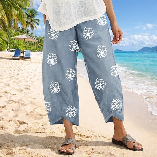 Per donna Pantaloni in cotone e lino Culotte Gamba Larga Chinos Vacanza Streetwear Essenziale Lunghezza intera Vita media Floreale Elastico in vita Stampa Comodo Comodità Micro-elastico Quotidiano