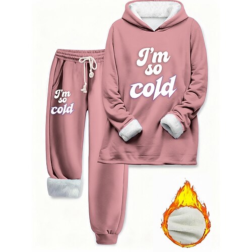 Per donna Quotidiano Elegante Set da due pezzi Tuta Set di Pantaloni Manica Lunga Con Cappuccio Grafico Lettera Coulisse Stampato Casuale Quotidiano Nero Rosa Blu Autunno Vestibilità comoda