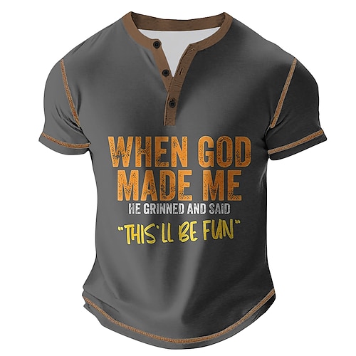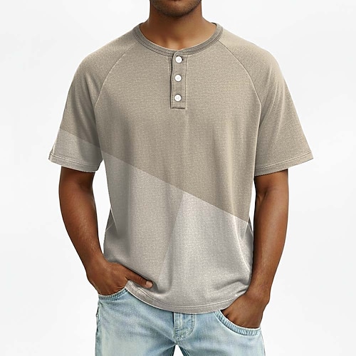 Per uomo Testo Manica Corta Casual Primavera Tutte le stagioni Blu Nero Grigio Verde Henley Maglietta Henley