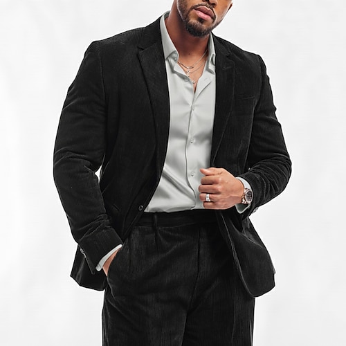 Uomo Affari Casuale Abito in velluto a coste Bavero classico Nero Borgogna Affari Casual Tinta unita Vestibilità su misura 2 pezzi Monopetto a un bottone