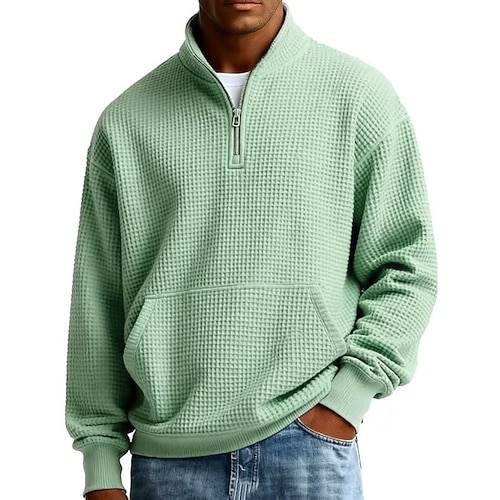 Per uomo Felpa con cappuccio Maglia Felpa a nido d'ape Maglione Felpa con zip corta Nero Bianco Verde chiaro Blu marino Viola chiaro Mezza zip Semplice Casuale Quotidiano Sport Outdoor Streetwear