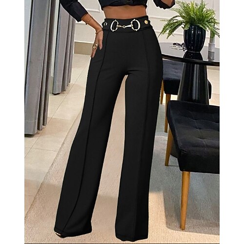 Per donna Pantaloni Eleganti Gamba larga Pantaloni Moda Streetwear Lunghezza intera Vita Alta Semplice Elastico in vita Traspirabilità Confortevole Micro-elastico Affari Abbigliamento quotidiano Nero