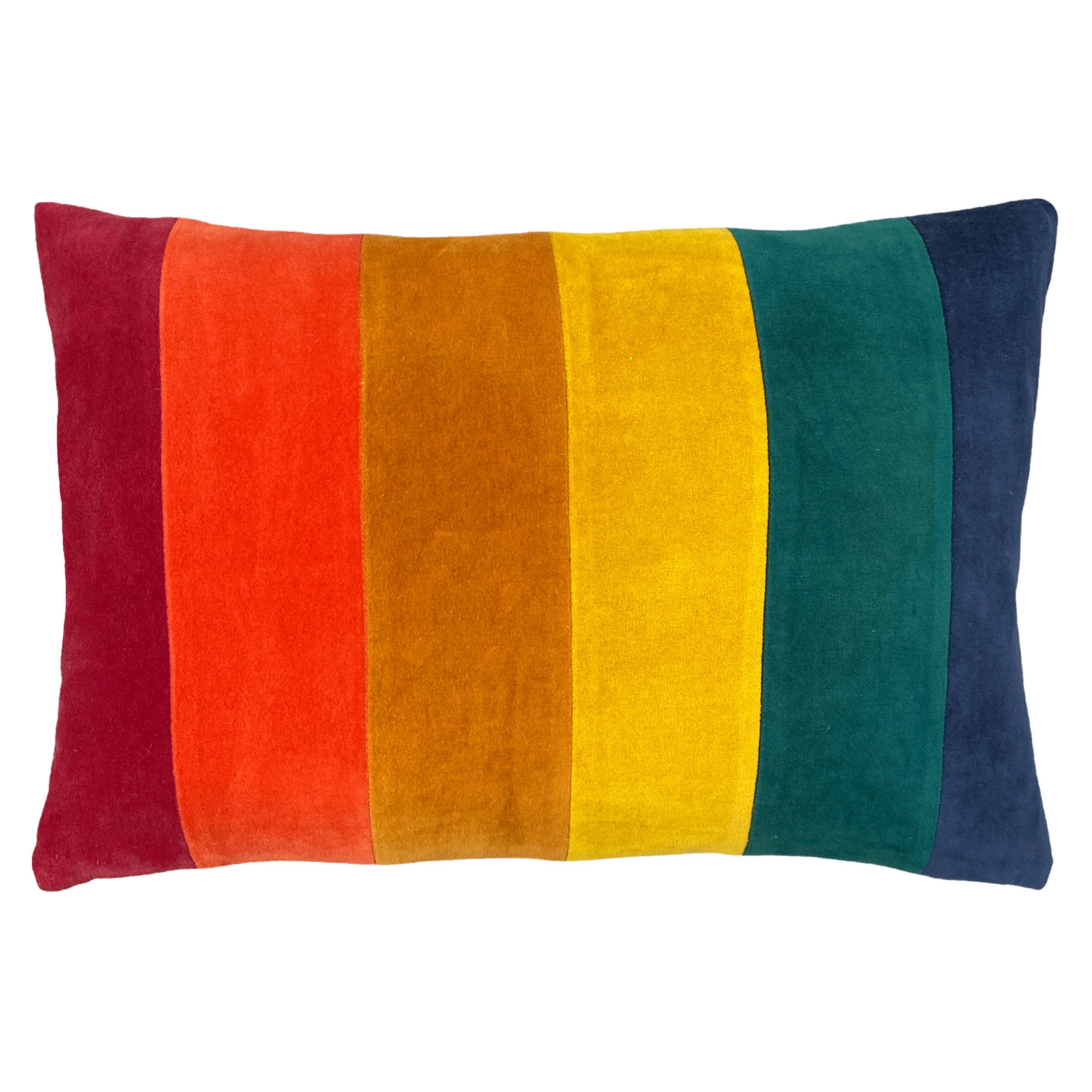 furn. Rainbow Stripe Cotton Velvet Filled Cushion - Multicolour - One Size | furn. Sale | Discount Designer Brands