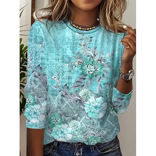 Per donna Maglietta Floreale Grafico Paisley Vintage Moda Elegante Manica Lunga Girocollo Top Regolari Quotidiano Weekend Stampato Blu Blu turchese Viola Arancione Marrone Primavera Autunno Inverno