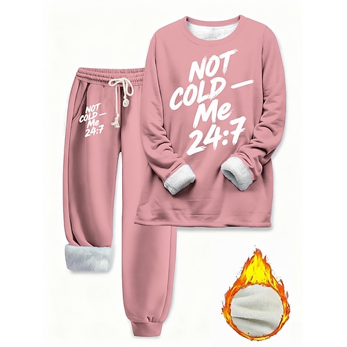 Per donna Quotidiano Elegante Set da due pezzi Tuta Set di Pantaloni Manica Lunga Girocollo Lettera Coulisse Stampato Casuale Quotidiano Nero Rosa Blu Autunno Vestibilità regolare