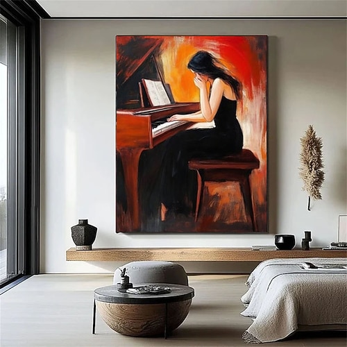 dipinto a mano enigmatico pianista dipinto a olio arte murale dipinto ragazza ballerina rossa dipinto arte astratta su tela donna che suona il pianoforte arte murale contemporanea decorazione