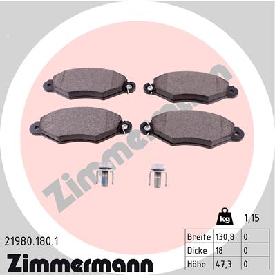 ZIMMERMANN Bremsbelagsatz, Scheibenbremse 21980.180.1 vorne rechts links Foto entspricht Lieferumfang für RENAULT CITROËN/PEUGEOT 7701205513 425205 42