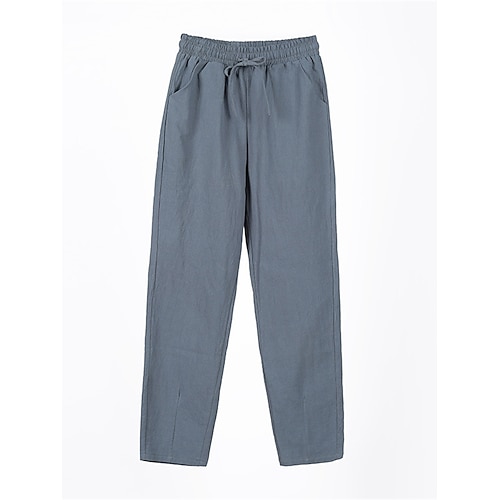 Per donna Pantaloni in cotone e lino Vacanza Vintage Moda Lunghezza intera Misura del girovita medio Tinta unica Comodo Asciugatura Rapida Traspirabilità Micro-elastico All'aperto Vacanza Ufficio